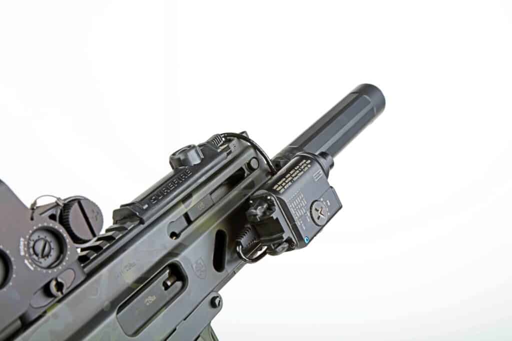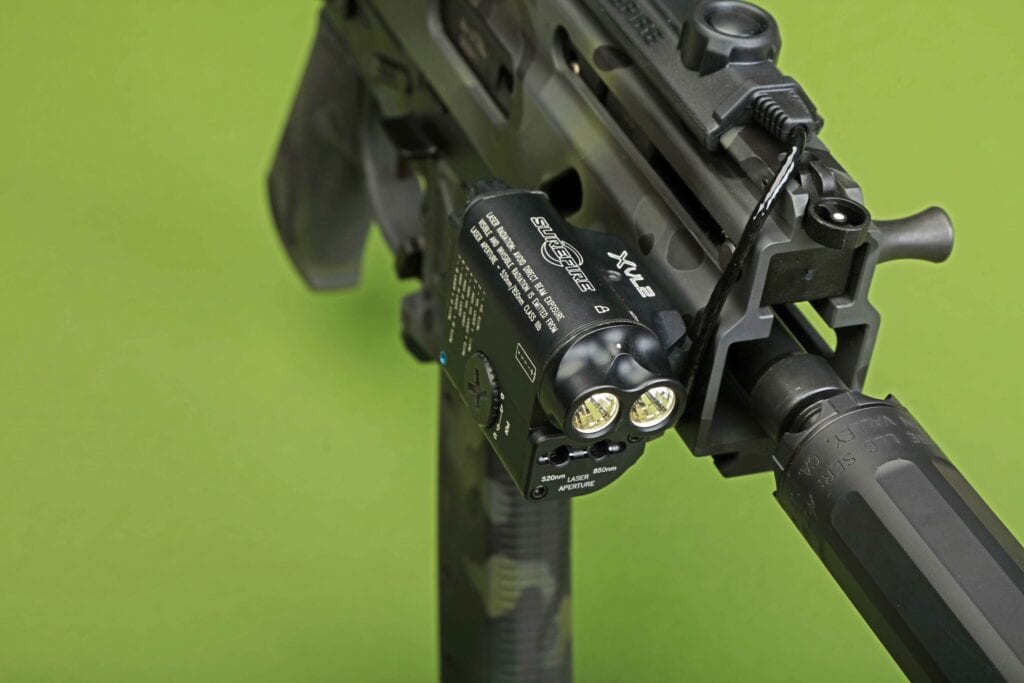 We asked why he chose the SureFire XVL2 to provide the Stribog’s light and laser capability. “Quality, ergonomics, and size were considerations,” he told us. “SureFire is a known commodity to me. They make solid products that are easy to use and can be trusted. With their XVL2, I have both a white/IR capable light and dual green and IR lasers bundled into a single unit.