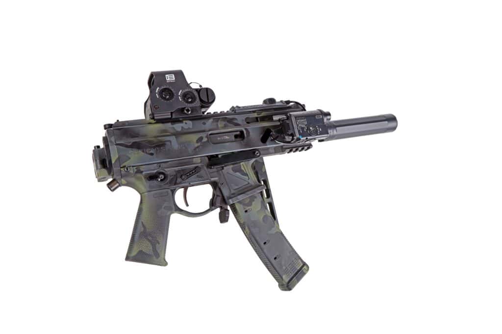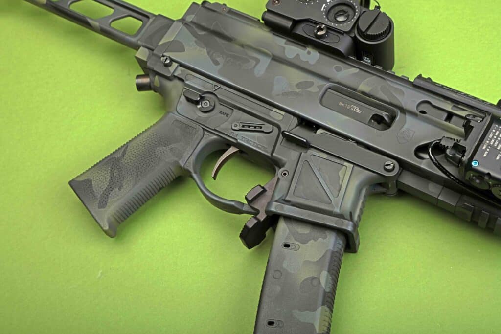 The SP9 A3S features an updated system over previous-generation Stribogs and brings a pair of fundamental improvements in the form of a semi-locked bolt with delayed action via transfer roller, and a non-reciprocating charging handle that remains in the front position when firing.