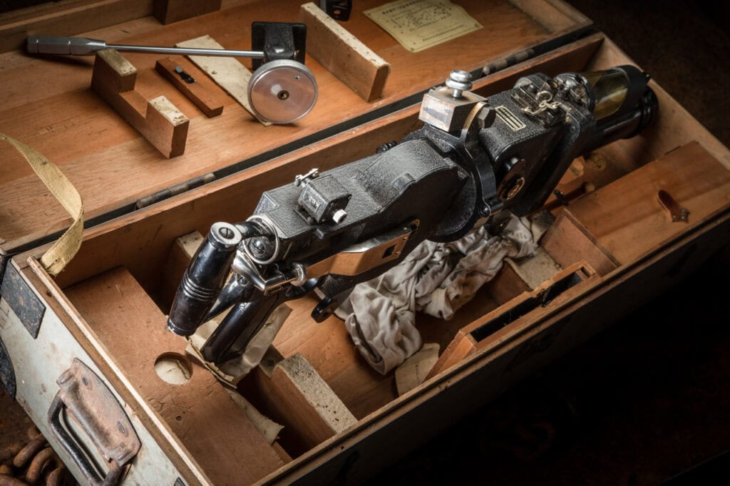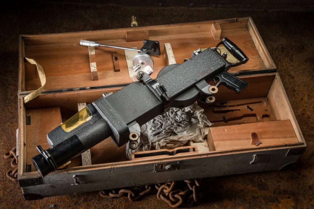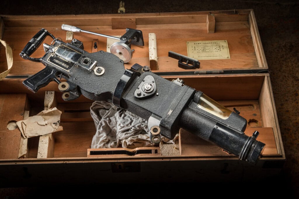 This one isn’t something you are likely to find mixed in a barrel of rusted Nagants, but it is from World War II. This particular piece is classified by the U.S. military as “Camera, Flexible Gun, Motion Picture, Rokuohsha (Konishoruko) Type 89, Japan.” Which is a bit of a mouthful to rattle off at your company Christmas party.