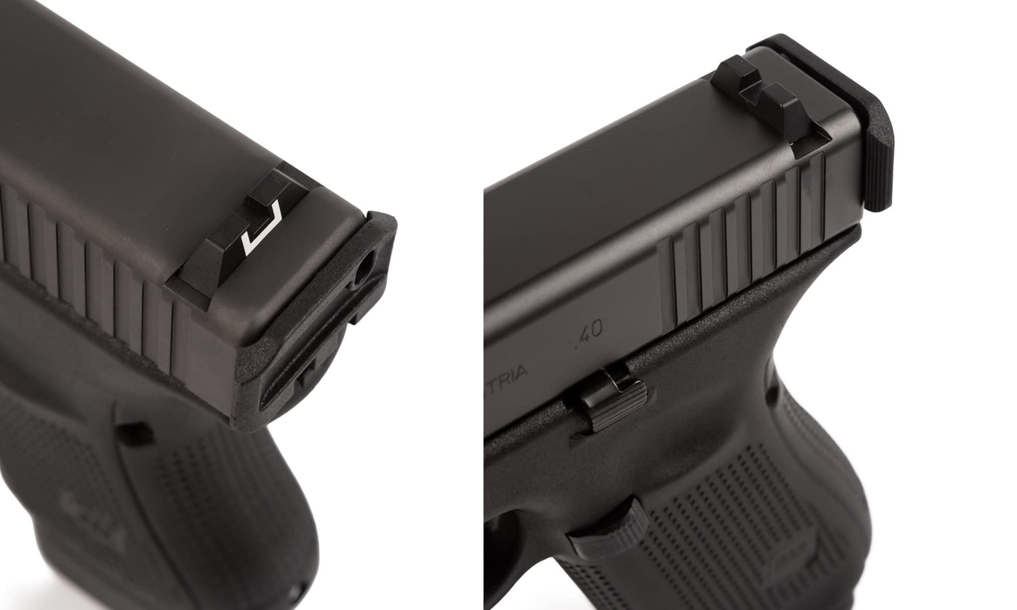 These rackers have become a popular upgrade for various Glock models, all of them imparting serrated “wings” to the slide butt. This obviously works in tandem with the slide’s rear serrations to enhance manual manipulation, but also allows for easier slide retraction when the pistol is equipped with a red dot optic.