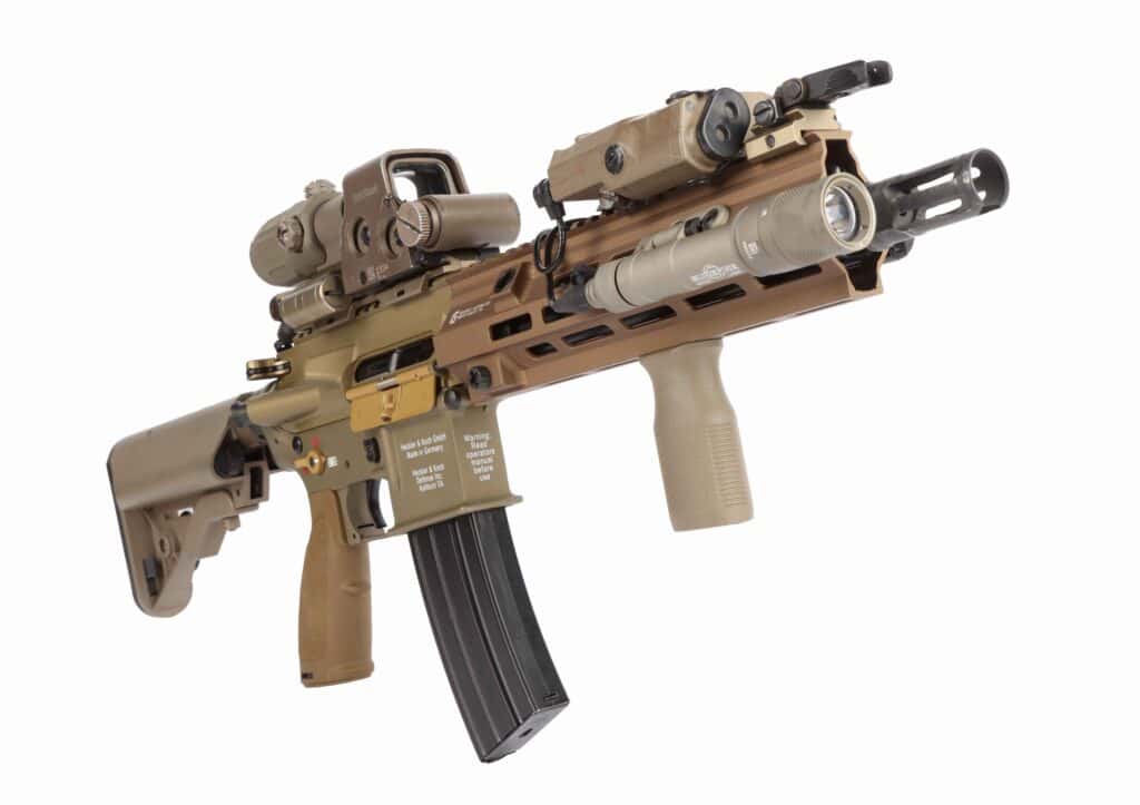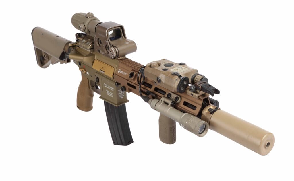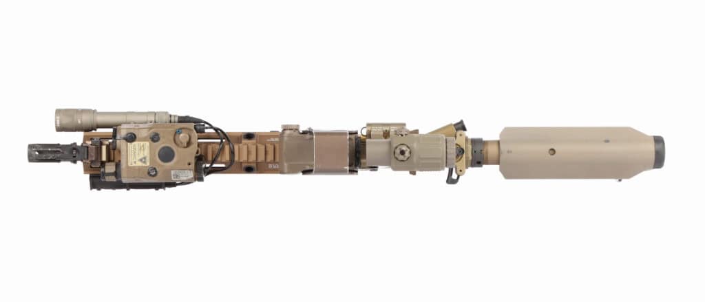 A SureFire ScoutLight Pro Infrared light has been incorporated for low-light operations, ensuring that the shooter can maintain situational awareness even in challenging environments.
